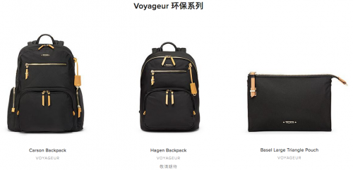 据悉,TUMI全新环保材质系列单品涵盖了两个深受欢迎的产品系列,分别是Alpha Bravo男士系列和Voyageur女士系列。
