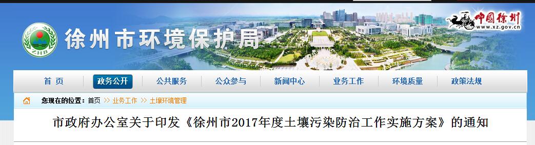 日前,徐州市政府印发《徐州市2017年度土壤污染防治工作实施方案》。全文如下: